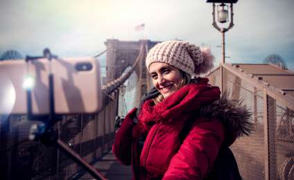 - Take a selfie using the built-in camera of your smartphone. This is the simplest and most popular way. Almost all modern smartphones have a built-in camera that is easy and convenient to use. The advantage of taking a selfie with the front camera is that you can see your image, control the angle and facial expressions. The downside is that the built-in camera can only capture a limited image. To capture not only your face, but as much space as possible in the frame, use a selfie stick or take a reflection in a mirror. Another drawback of built-in cameras is the insufficient quality of the photos. No matter how hard you try to take a successful self-portrait on a smartphone, its quality will still be lower than shooting with a mirrorless camera.